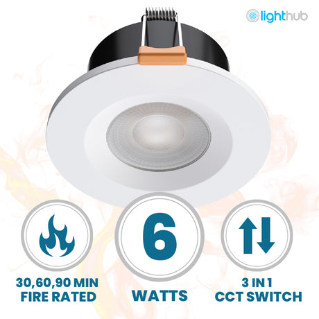 STRATA ONE | Tri-Colour CCT | LED Fire Rated Downlight | Dimmable 6W 600lm | IP65 | White
