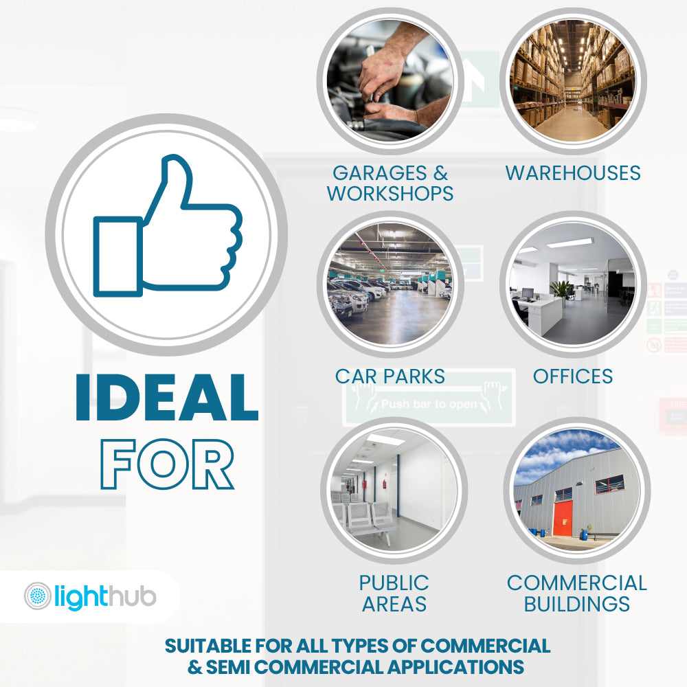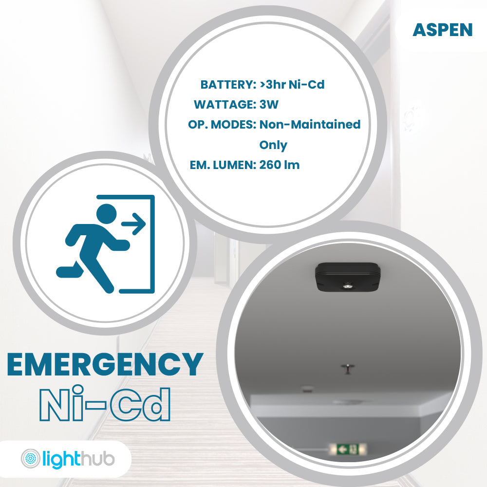 The LightHub Emergency surface LED downlight assists in the compliance of regulations BS 5266 and BS EN 1838:2013 for emergency lighting in commercial, public and accommodation premises. Ideal for achieving compliance with emergency lighting regulations.