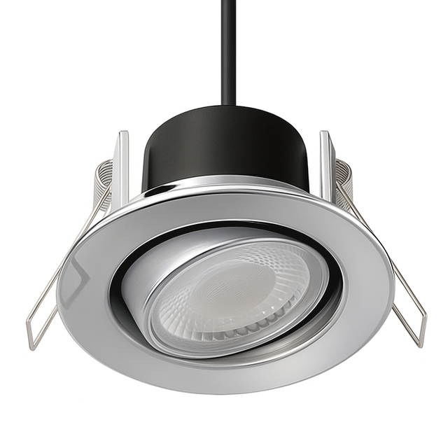 The Fire Rated Dimmable Tilt Adjustable Downlight offers unbeatable value for contractors and installers. Each fitting delivers 480 lumens of neutral 4000K light from an efficient 5W integrated LED. The IP65 rating ensures suitability for bathrooms and kitchens, while fire-rated protection (30/60/90 mins) meets UK building regulations.