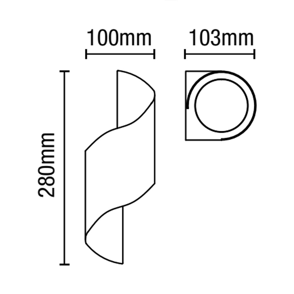 BUDE | Curved Up Down Coil Twist Wall Light Indoor Outdoor Fitting | 9W LED | 4000K Neutral White | IP54 | Black