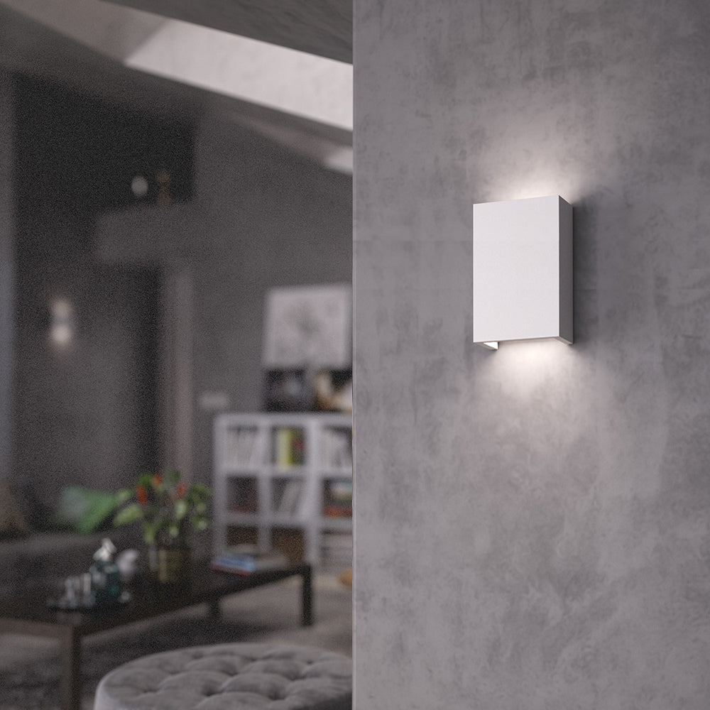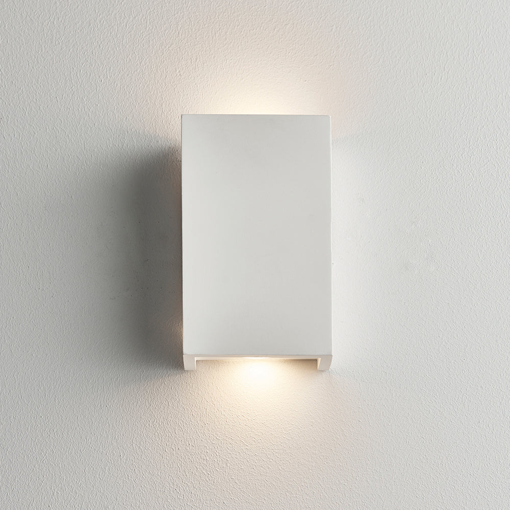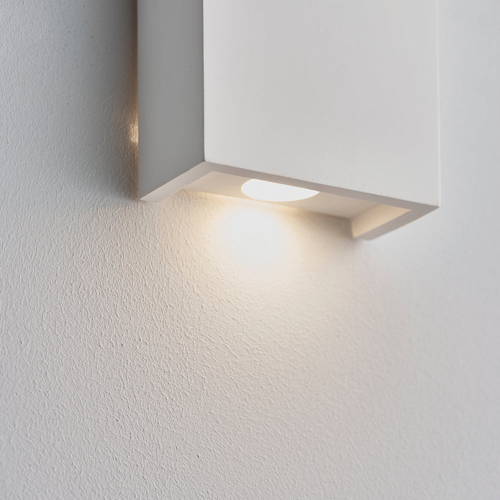 PALMER Rectangle plaster wall light is a stylish fully paintable uplighter with a smooth white finish and a stunning up down light wall effect. Perfect for living rooms, stairs, hallways, bedrooms, kitchens, waiting rooms, offices and other indoor areas.