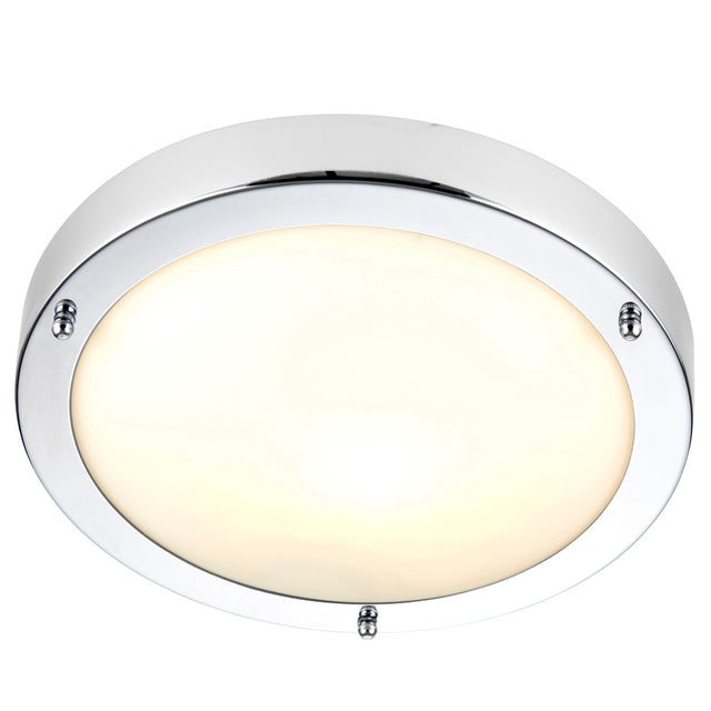 The chrome bathroom ceiling light is a sleek, modern lighting solution ideal for bathrooms. Featuring a polished chrome finish and a sturdy opal glass diffuser