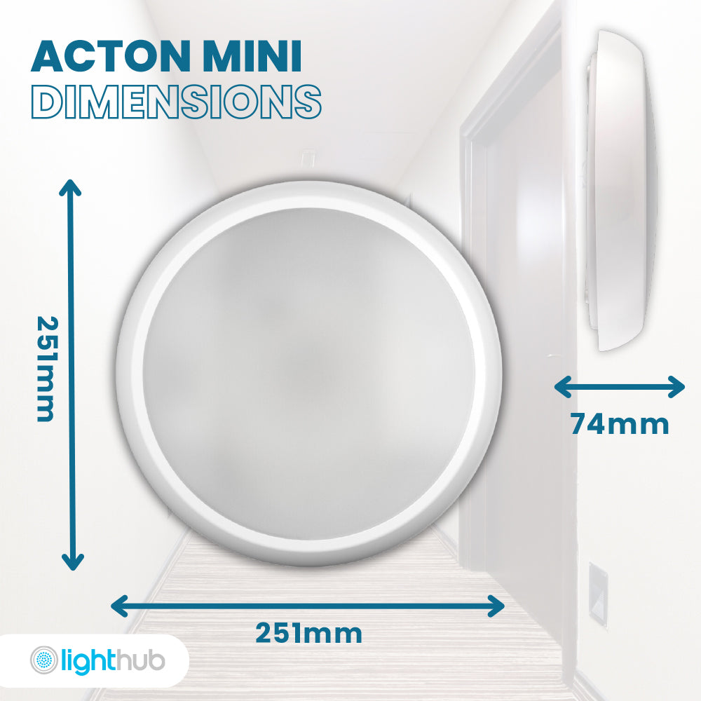 The ACTON MINI Small Microwave Motion Sensor Tri-Colour & Multi Wattage LED bulkhead is an ultimate all in one surface light fitting. Ideal for communal hallways, stairs, corridors, bathrooms, HMO or other indoor spaces, whether ceiling or wall mounted.