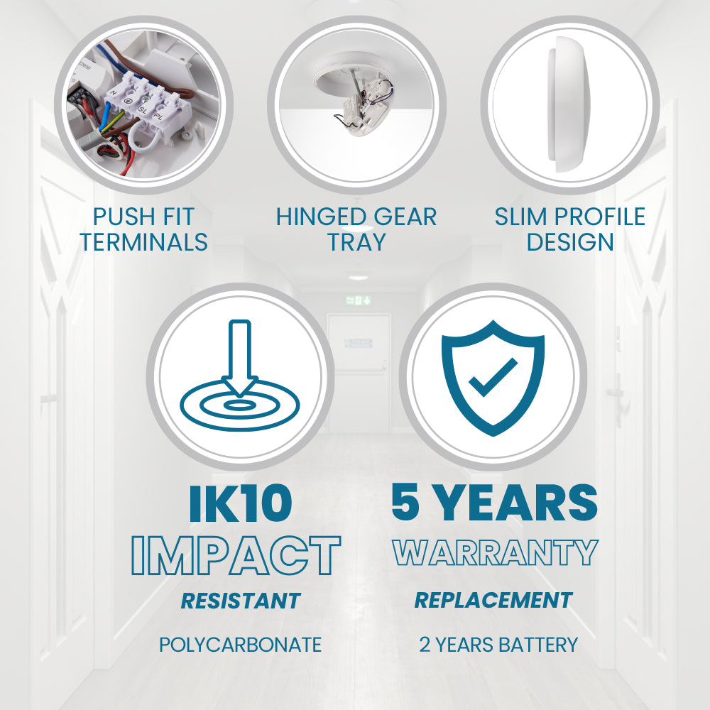The ACTON MINI Small Tri-Colour & Multi Wattage LED bulkhead is an ultimate all in one surface light fitting. Ideal for communal hallways, stairs, corridors, bathrooms, HMO or other indoor spaces, whether ceiling or wall mounted.