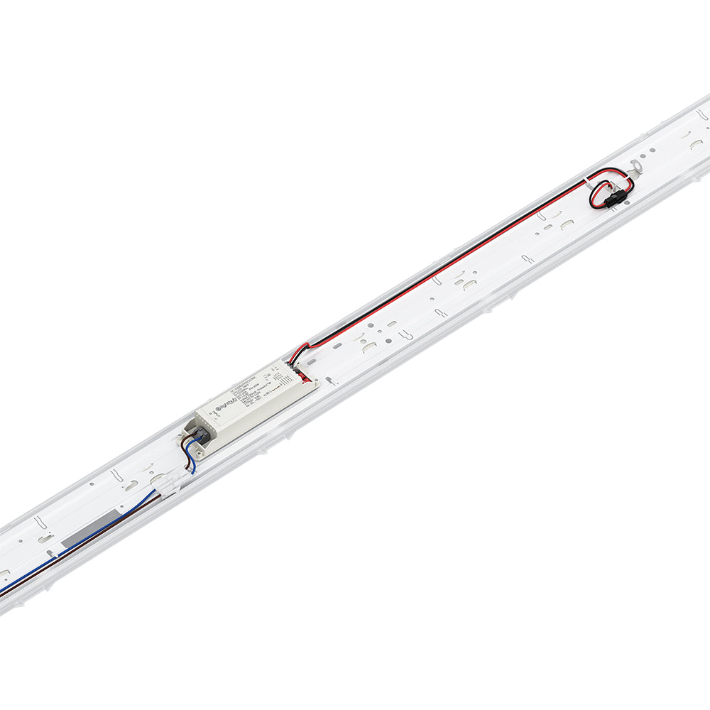 Highly efficient 120 lumens per watt light output via integrated LEDs. Heavy-duty stainless-steel clips to secure the diffuser in place and fix the light to the ceiling surface. Stainless steel will not rust or corrode. Features single gland knockout at the end of the fitting.