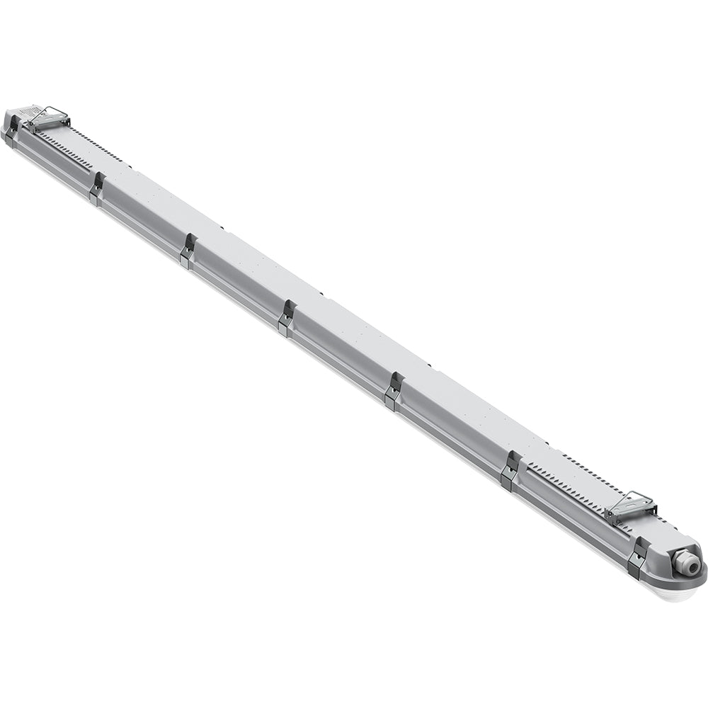 Highly efficient 120 lumens per watt light output via integrated LEDs. Heavy-duty stainless-steel clips to secure the diffuser in place and fix the light to the ceiling surface. Stainless steel will not rust or corrode. Features single gland knockout at the end of the fitting.