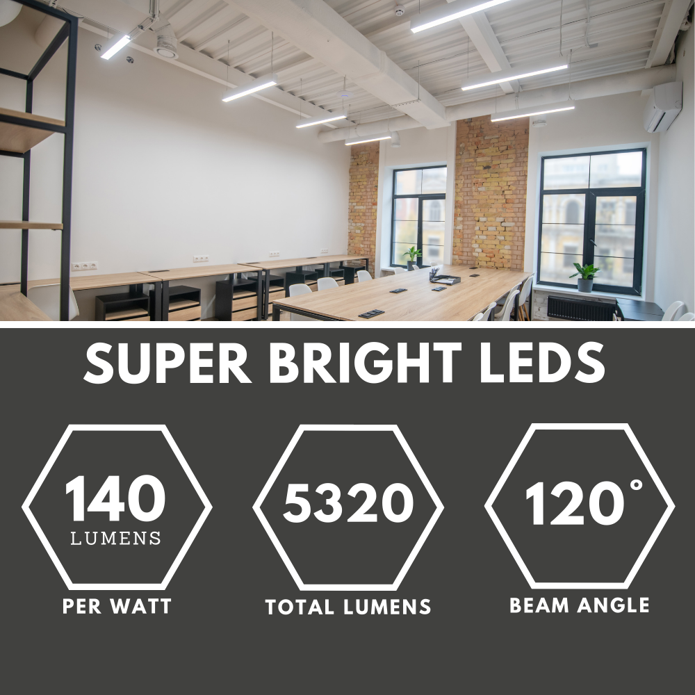 VALA LED Batten Light | 4ft High Lumen 5320lm | CCT Tri-Colour & Multi Wattage | IP20 | Standard