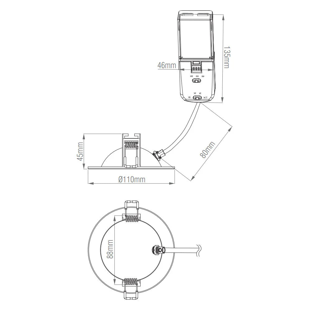 - CCT Switchable: 2700K, 3000K, 4000K, 6000K