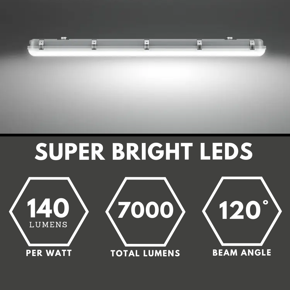 TORO Non-Corrosive LED Batten Light | 5ft High Lumen 7000lm | CCT Tri-Colour & Multi Wattage | IP65 | Standard