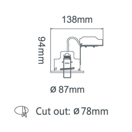 White Shower Fire Rated GU10 Open Back Downlight | Pressed Steel | IP65 | 30-90 Min Rated