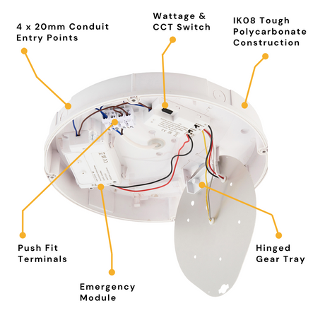 BALHAM PRO Drum Bulkhead Light Fitting | LED Multi Wattage | CCT 5-Colour | IP65 | Standard Model
