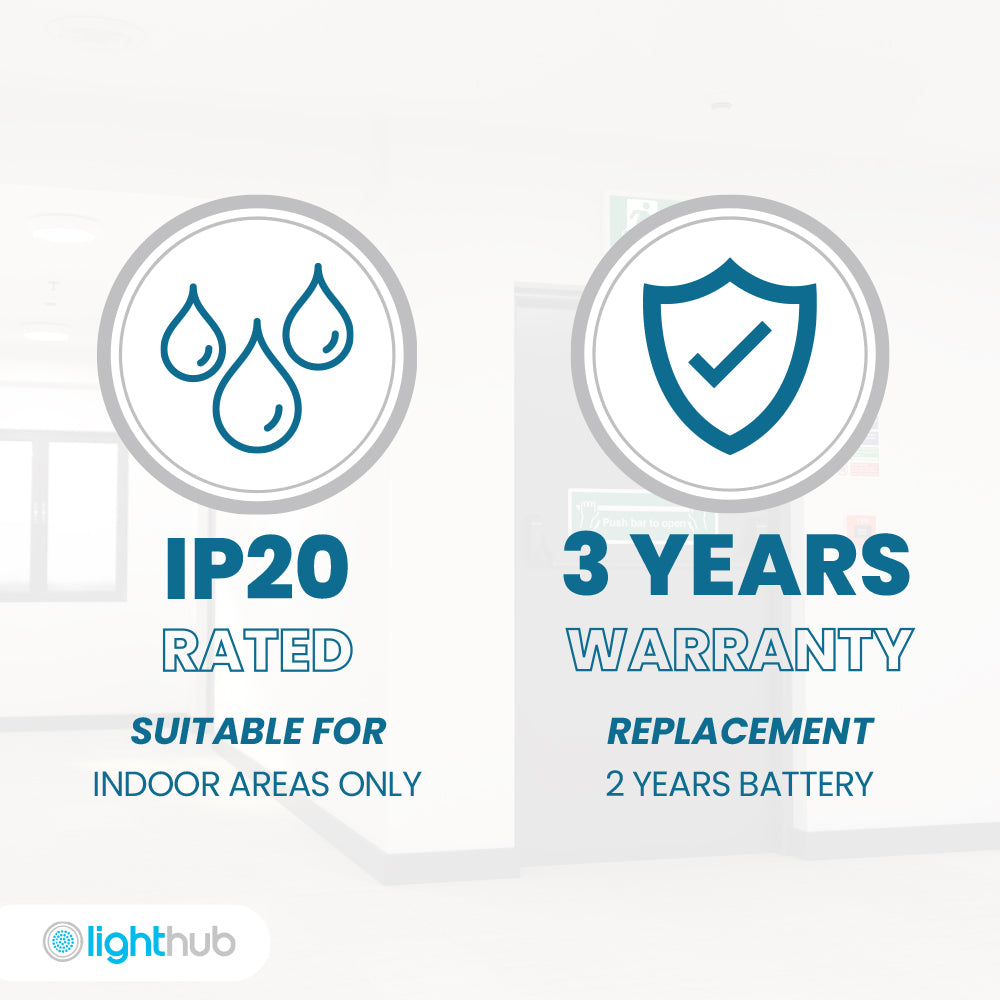 This IP20 self test emergency twin spot LED light is perfect for indoor areas which require an emergency twin spot wall light.   The twinspot is also a direct replacement and energy-efficient alternative to traditional halogen-style emergency twin spot bulkheads.