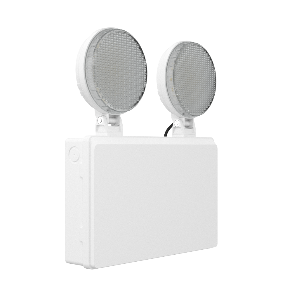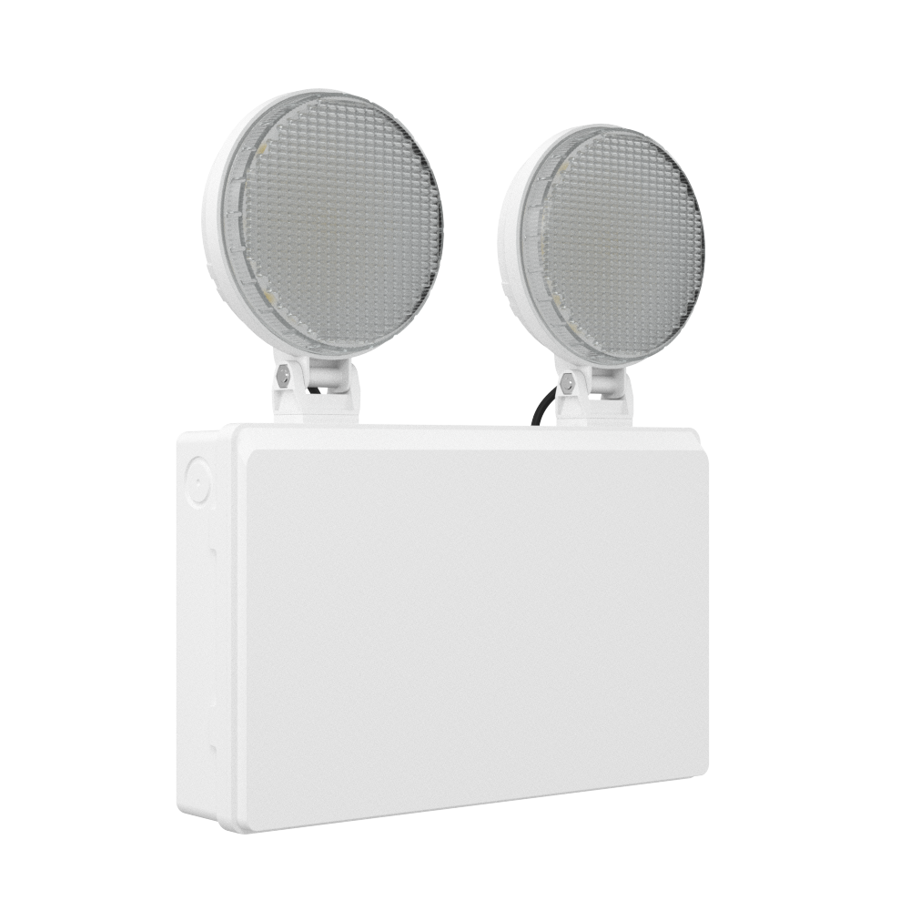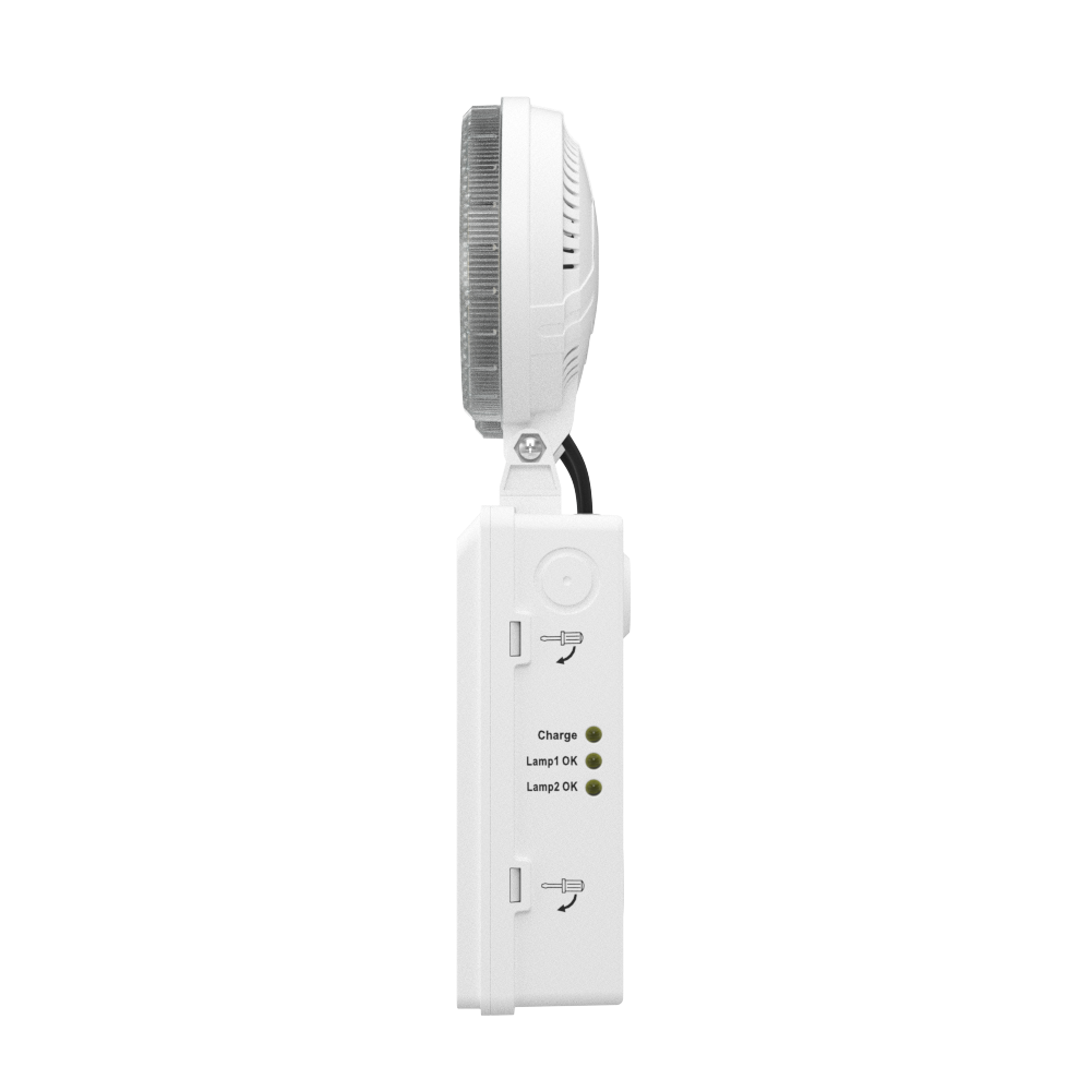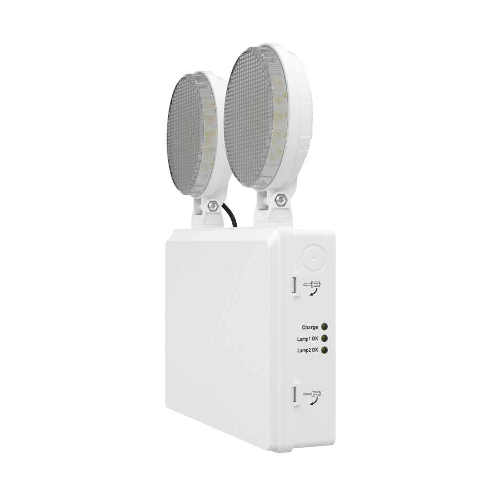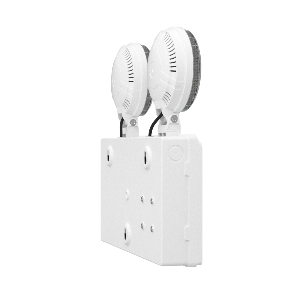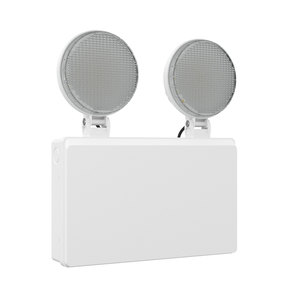 Suitable for use in large open areas such as warehouses, factories, wide corridors, offices or escape routes where general illumination is required in an emergency. Features rotatable spot lights which can be angled for specific illumination area.