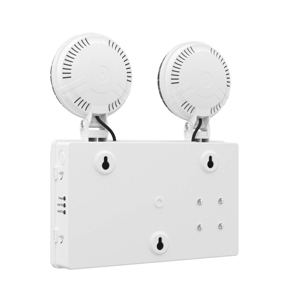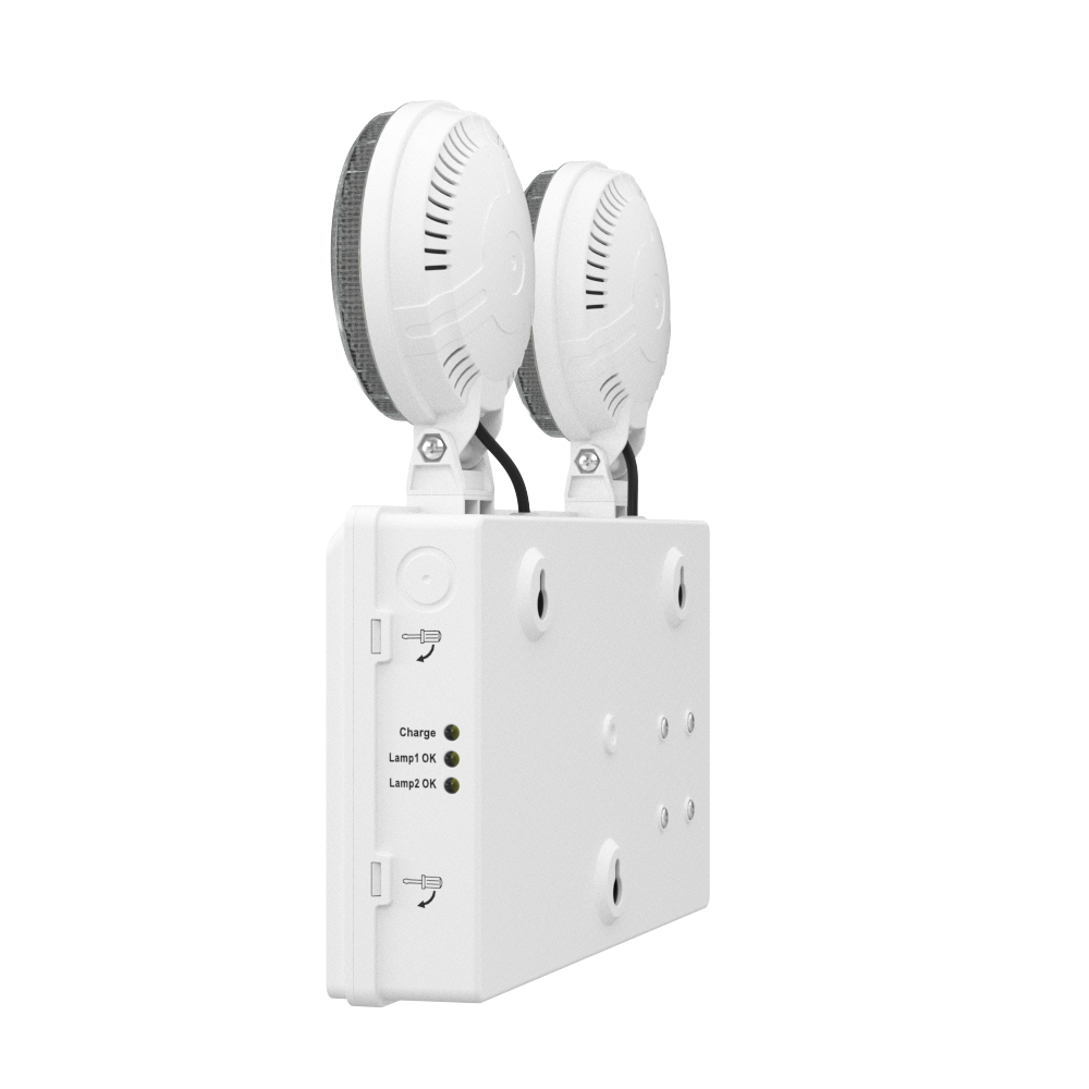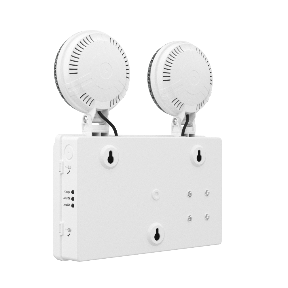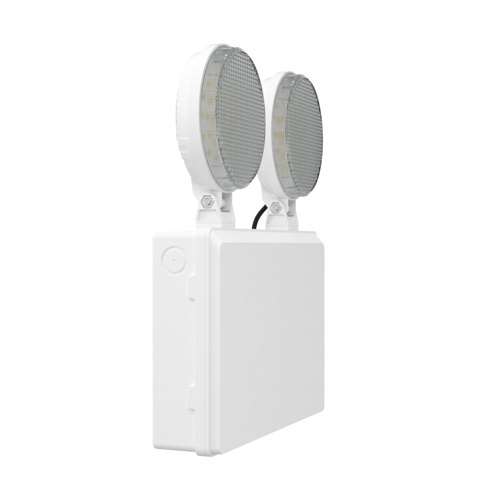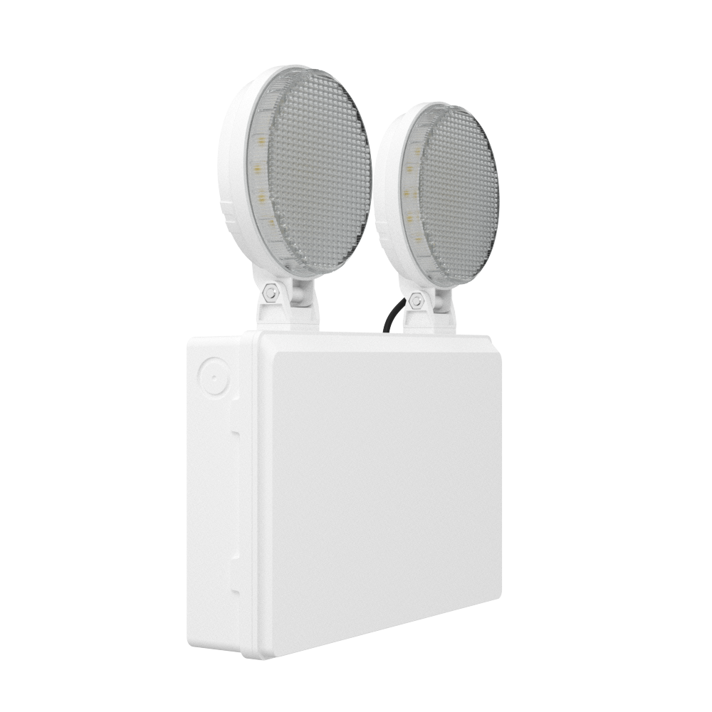 Suitable for use in large open areas such as warehouses, factories, wide corridors, offices or escape routes where general illumination is required in an emergency. Features rotatable spot lights which can be angled for specific illumination area.