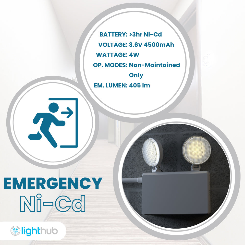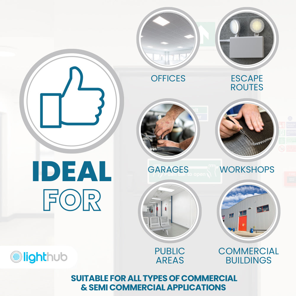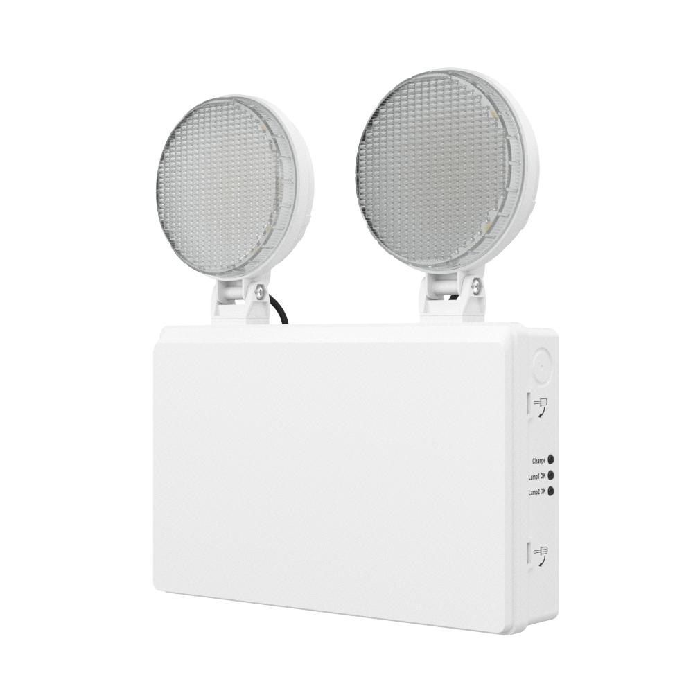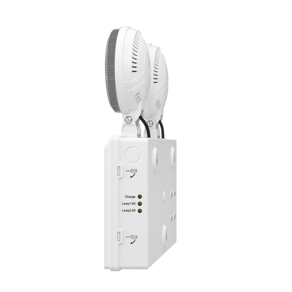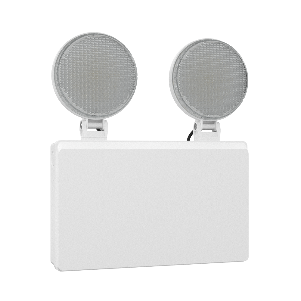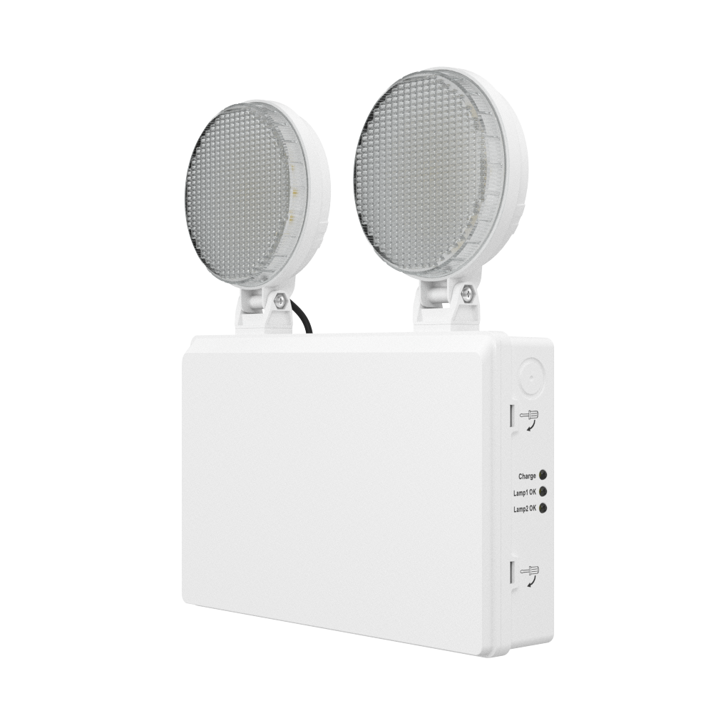 Suitable for use in large open areas such as warehouses, factories, wide corridors, offices or escape routes where general illumination is required in an emergency. Features rotatable spot lights which can be angled for specific illumination area.
