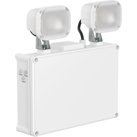 Twin Spot Non Maintained Self Test Wall Light | LED 6W 490lm | 6000K Daylight | IP65 | 3hr Emergency