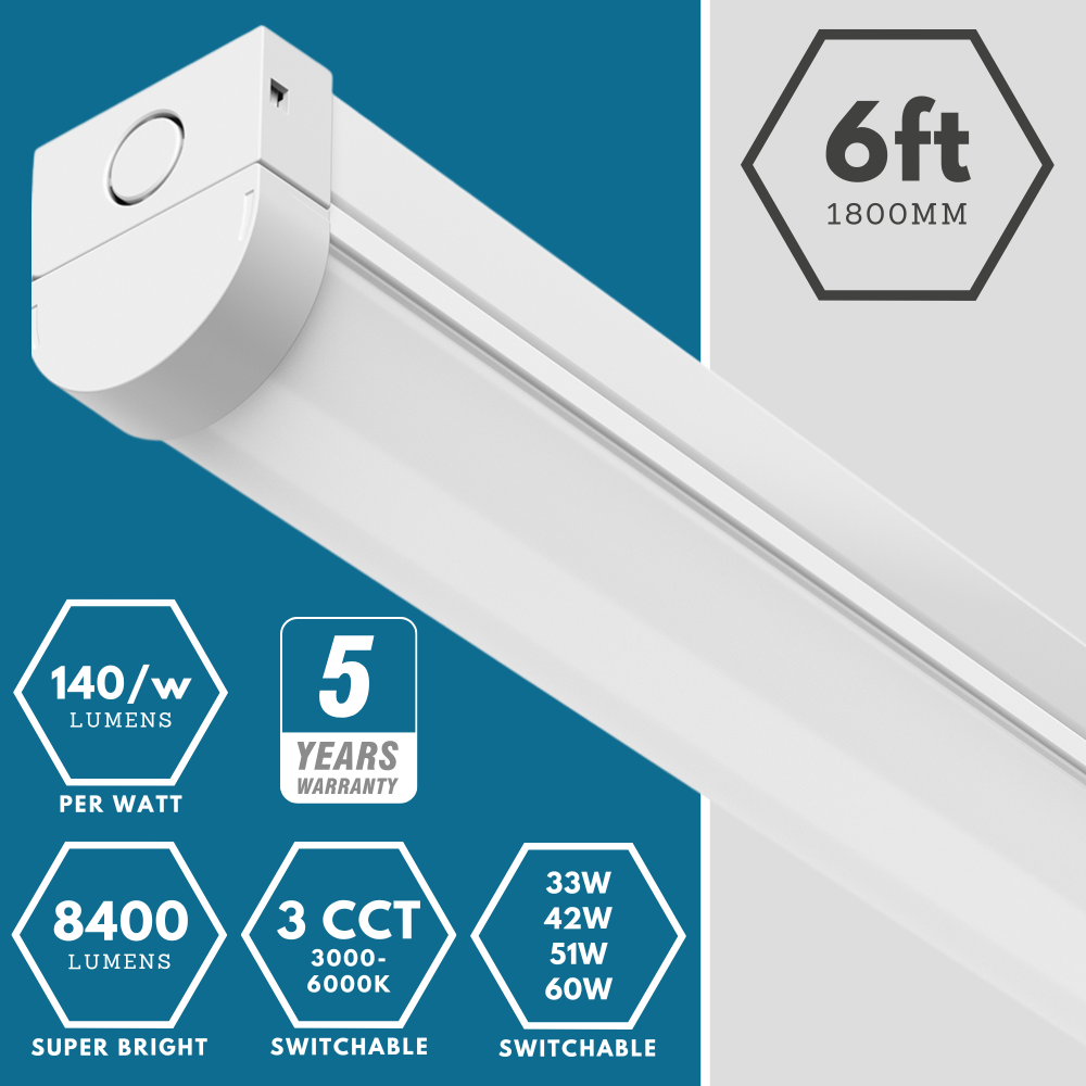 VALA LED Batten Light | 6ft High Lumen 8400lm | CCT Tri-Colour & Multi Wattage | IP20 | Standard