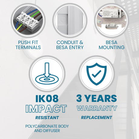 VALA LED Batten Light | 6ft High Lumen 8400lm | CCT Tri-Colour & Multi Wattage | IP20 | Microwave
