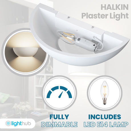 HALKIN Half Moon Plaster Uplighter Fitting | E14 (SES) | Up Down Light Effect