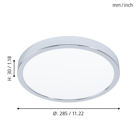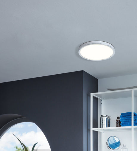 Slim Round Ceiling Light Fitting | LED 20.5W 2400lm | 3000K Warm White | IP44 | Chrome