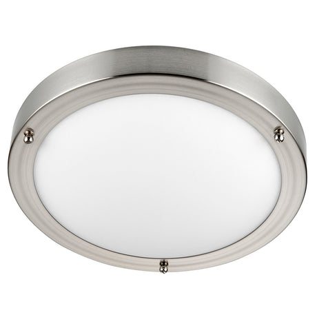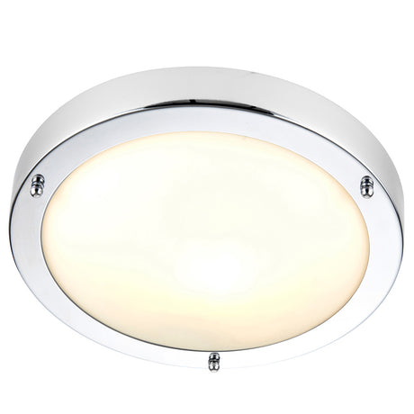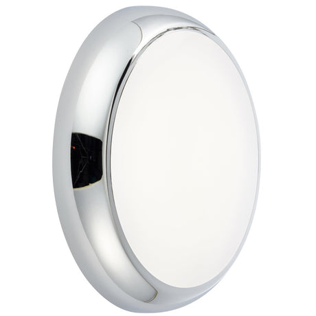 Slim Round Bathroom Bulkhead Ceiling Light Fitting | 7W E27 | IP44 | Brushed Chrome | 2700K Warm White