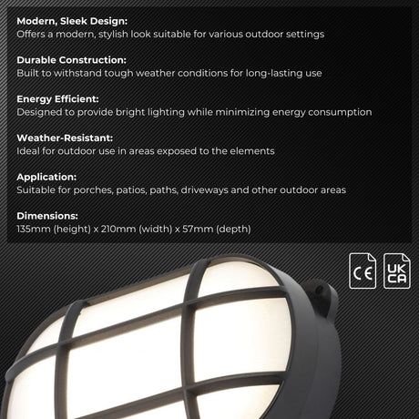 CAPELLA | Slim Oval Bulkhead Grill Cage Coastal Light | 15W LED 750lm | 4000K Neutral | IP65 | Black