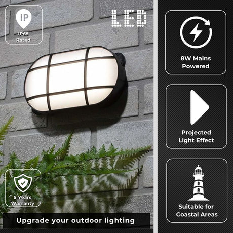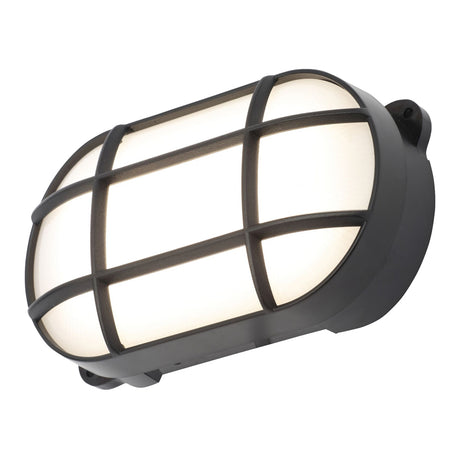 CAPELLA | Slim Oval Bulkhead Grill Cage Coastal Light | 8W LED 400lm | 4000K Neutral | IP65 | Black