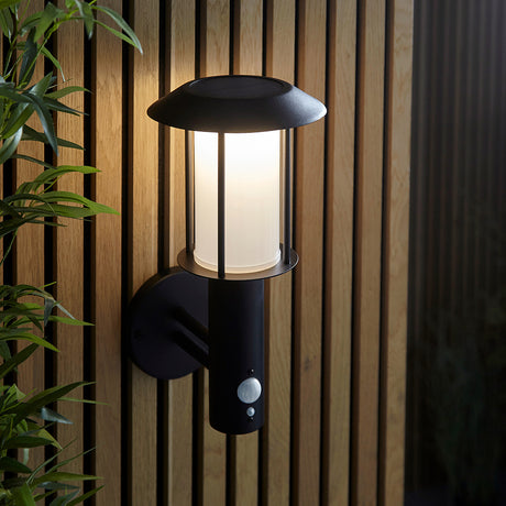 TARROW | Up Outdoor Wall Porch Lantern Light | IP44 | Solar LED | Black | PIR Motion Sensor