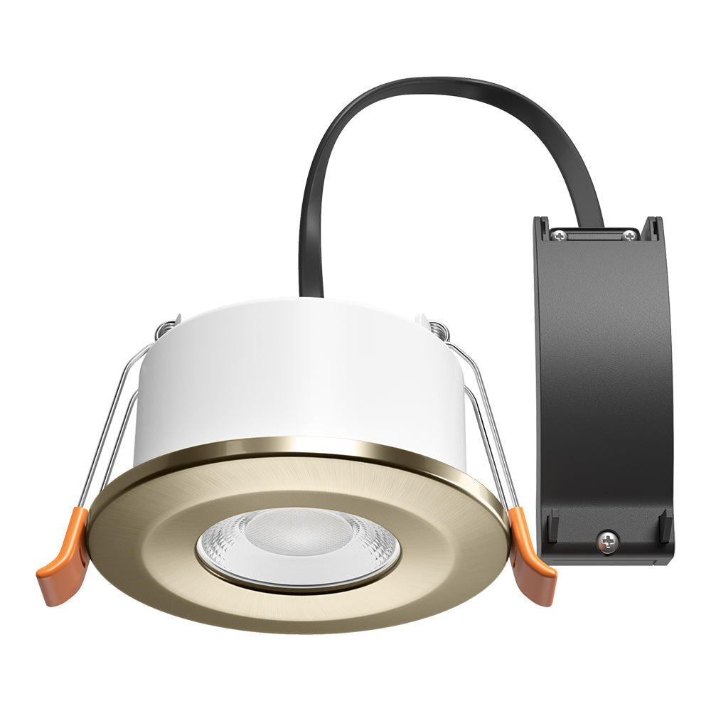 Built with IP65 water resistance, it's ideal for bathrooms, kitchens, and commercial environments. Fire-rated for 30, 60, and 90-minute ceilings, it provides enhanced fire protection. The sleek antique brass bezel blends seamlessly with modern interiors, making it perfect for both residential and commercial use.