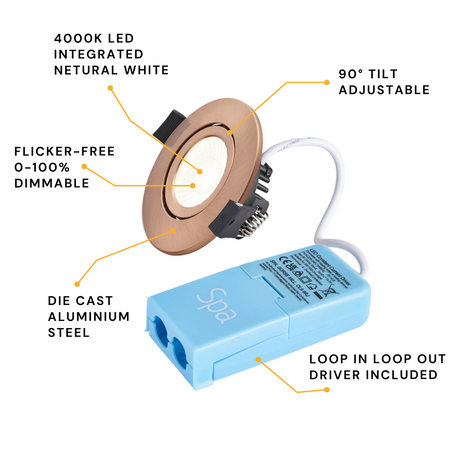 4CCT LITE | LED Fire Rated Downlight | Dimmable 5W 5200lm | IP65 | Antique Brass