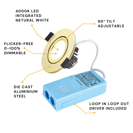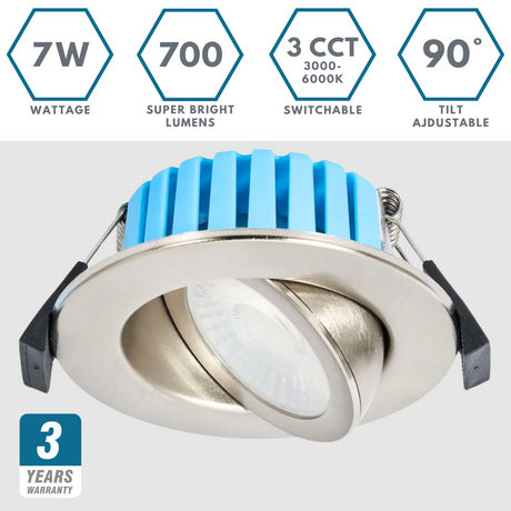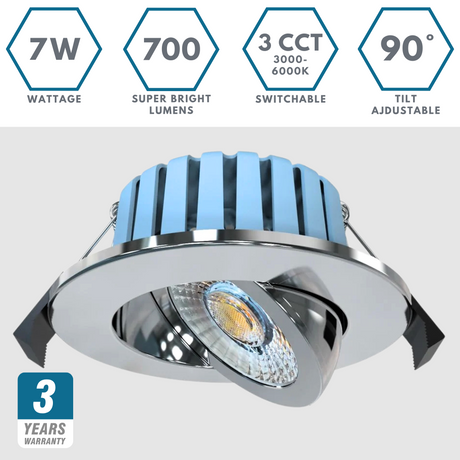 EDEN | Tri-Colour CCT | LED Tilt Adjustable Fire Rated Downlight | Dimmable 7W 700lm | IP65 | White