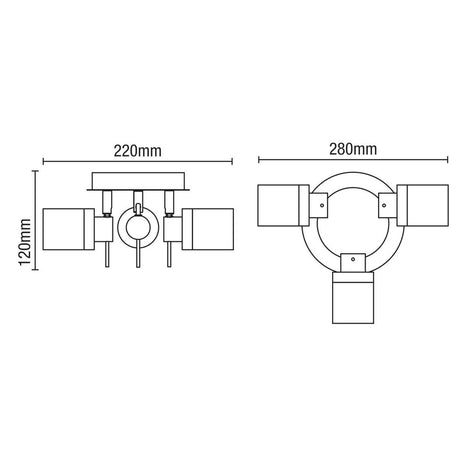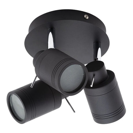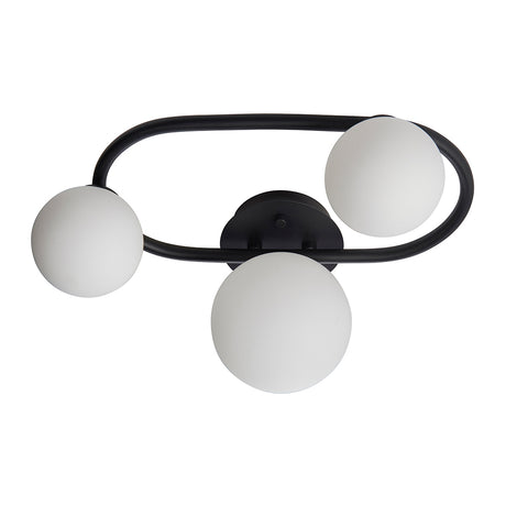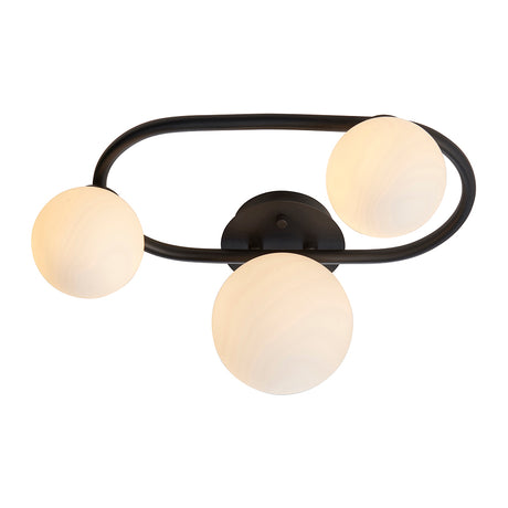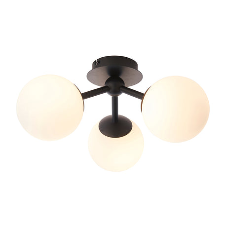 PULSA | Globe Glass Waterproof Dimmable Ceiling 3-Light Semi-Flush Fitting | G9 | IP44 | Matt Black