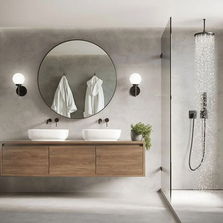 PORTO | Globe Glass Waterproof Wall Light Fitting | G9 | IP44 | Black