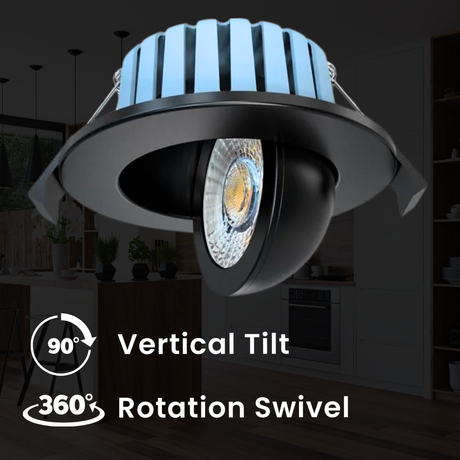 EDEN | Tri-Colour CCT | LED Tilt Adjustable Fire Rated Downlight | Dimmable 7W 700lm | IP65 | Black