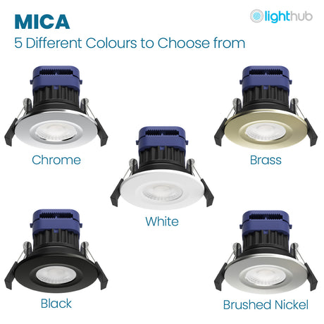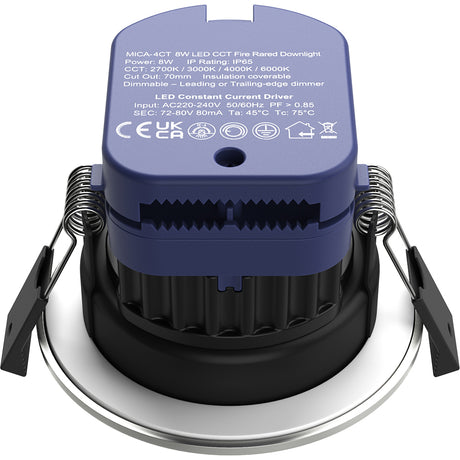 MICA | Quad-Colour CCT | LED Fire Rated Downlight | Dimmable 8W 900lm | IP65 | Brushed Chrome
