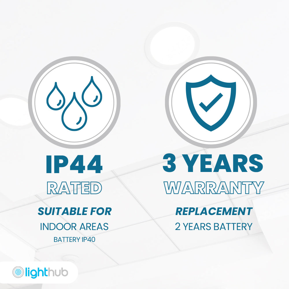 IP44 (Fitting), IP40 (Emergency Pack)