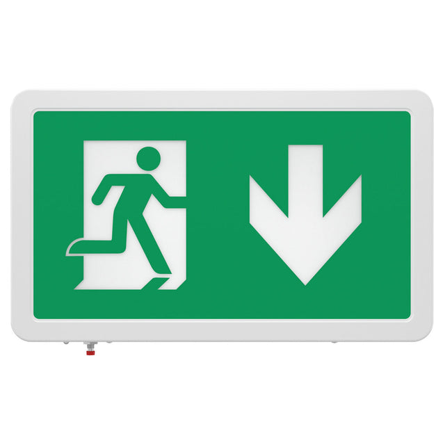 MAGNA Over Door Fire Exit Box Running Man Light | LED 4W 200lm | 6000K Daylight White | IP20 | 3hr Emergency Function | Down Arrow