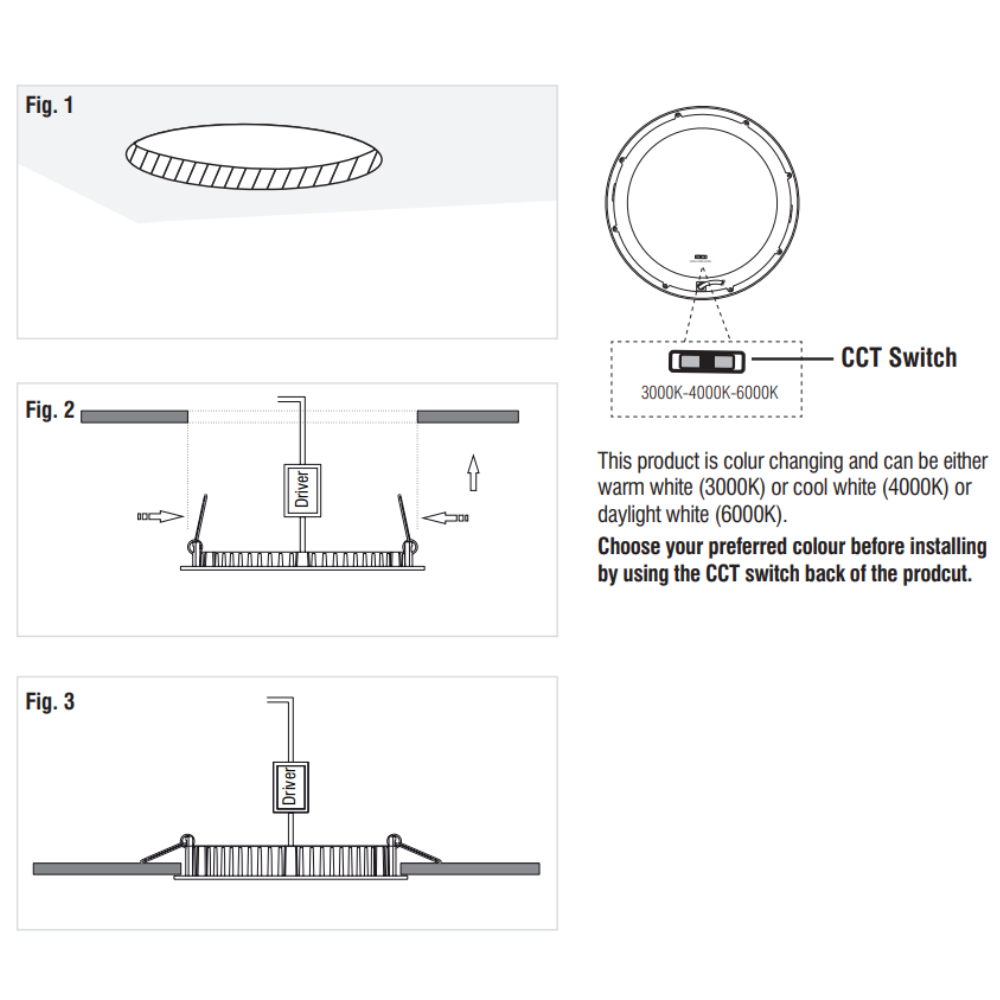- CCT Selectable – 3000K, 4000K, and 6000K