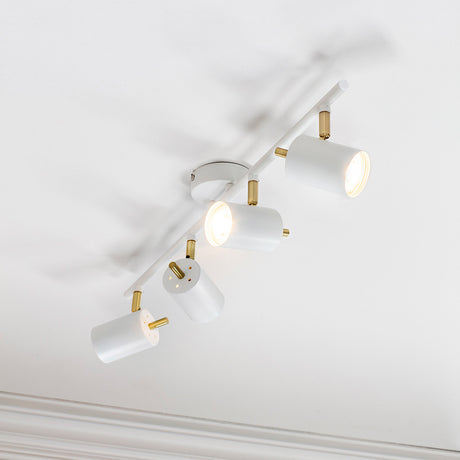 GULL | 4 Bar Semi Flush Ceiling Spotlight Fitting | 4 x GU10 | IP20 | Matt White & Satin Gold